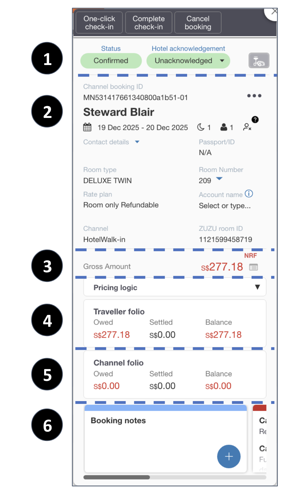 - View other - Cancellation policy, Modification logs, and add Booking notes.