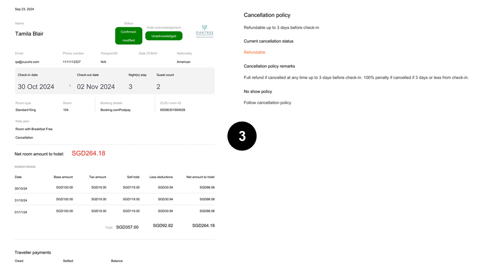 Tags: Print, booking details, traveller folio, registration card, printer icon, download, PDF, email traveller folio, email to traveller, traveller email, send email