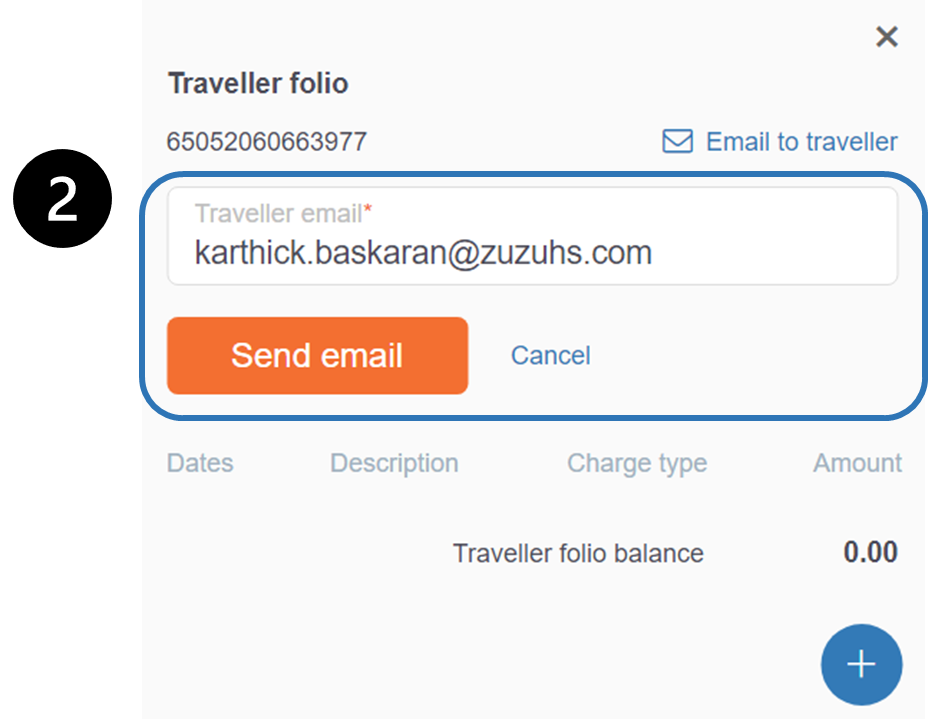 1. In Traveller folio, click on “Email to traveller”.