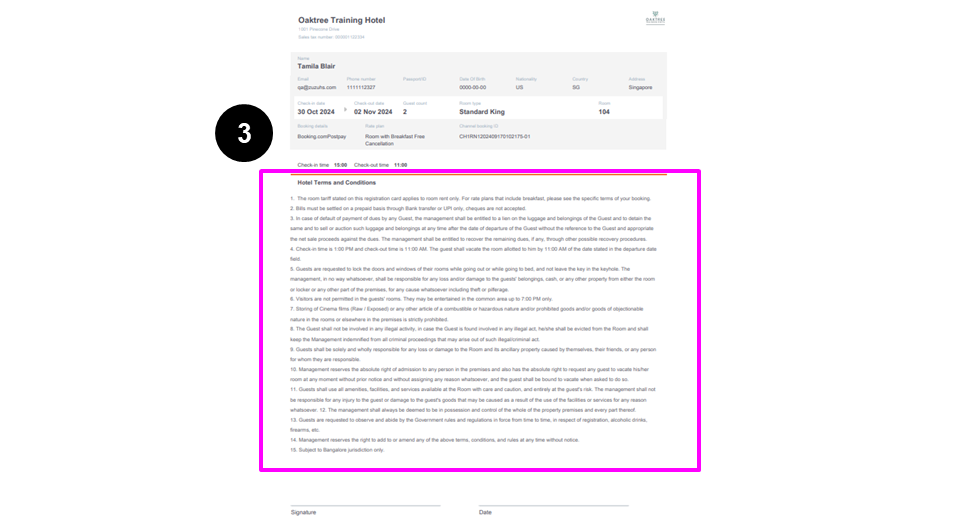 Hotel terms and conditions can be set up through the Hotel Settings → Hotel Content page.