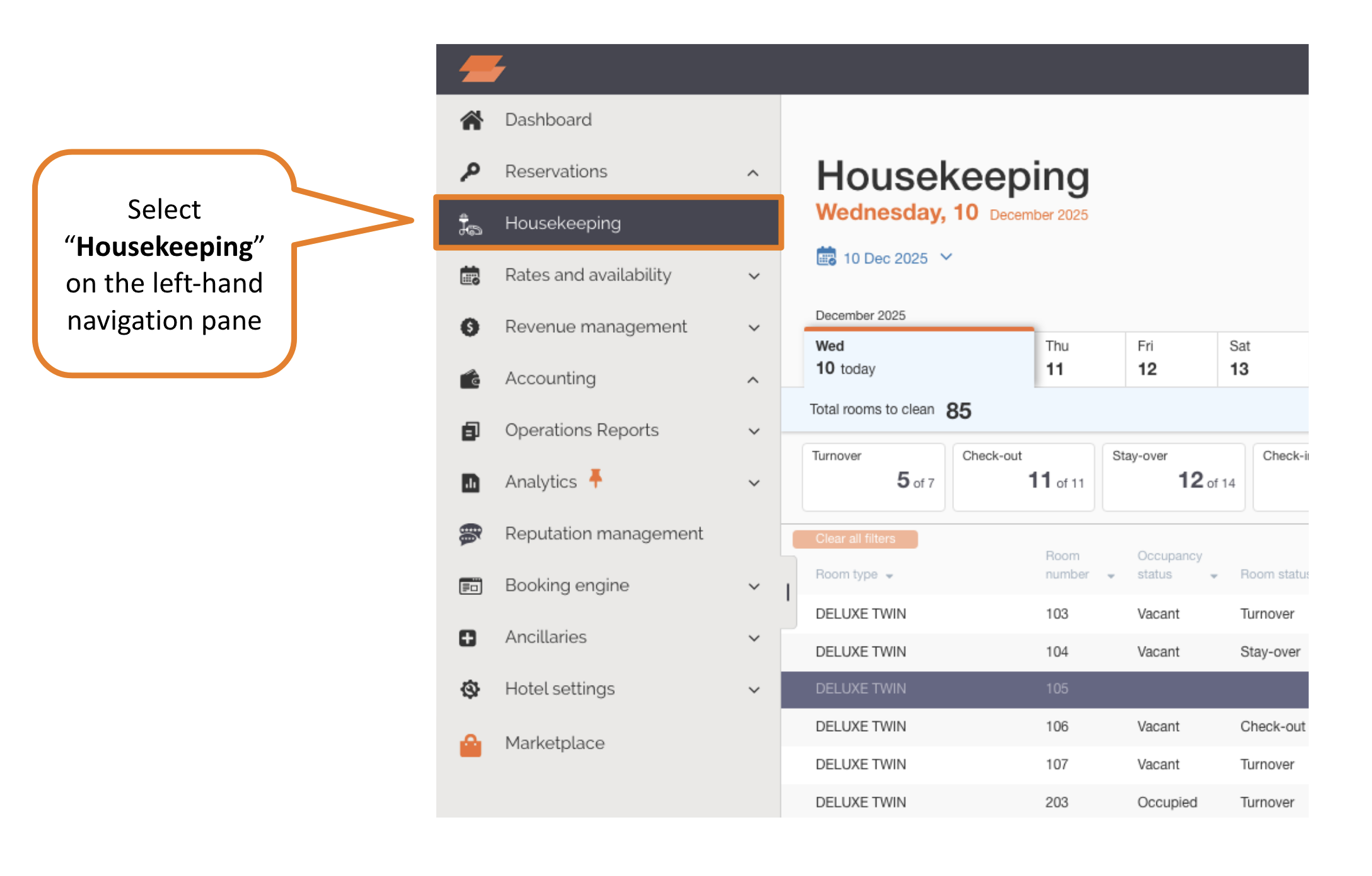 With Housekeeping, hotel users can manage housekeeping operations by: