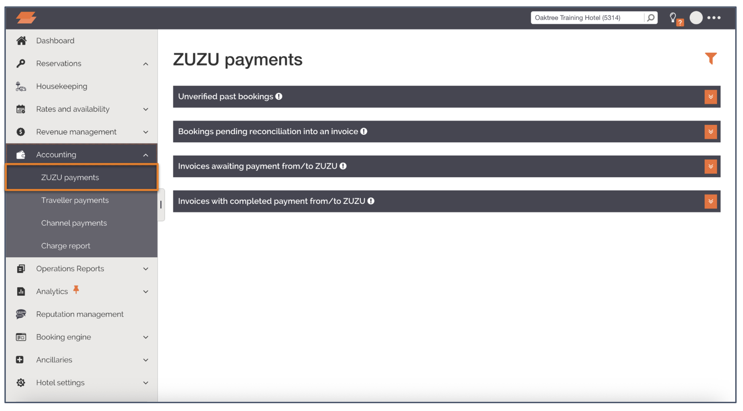 *The ZUZU Payments page is only accessible by users with ZUZU log-in roles as hotel manager or back office.