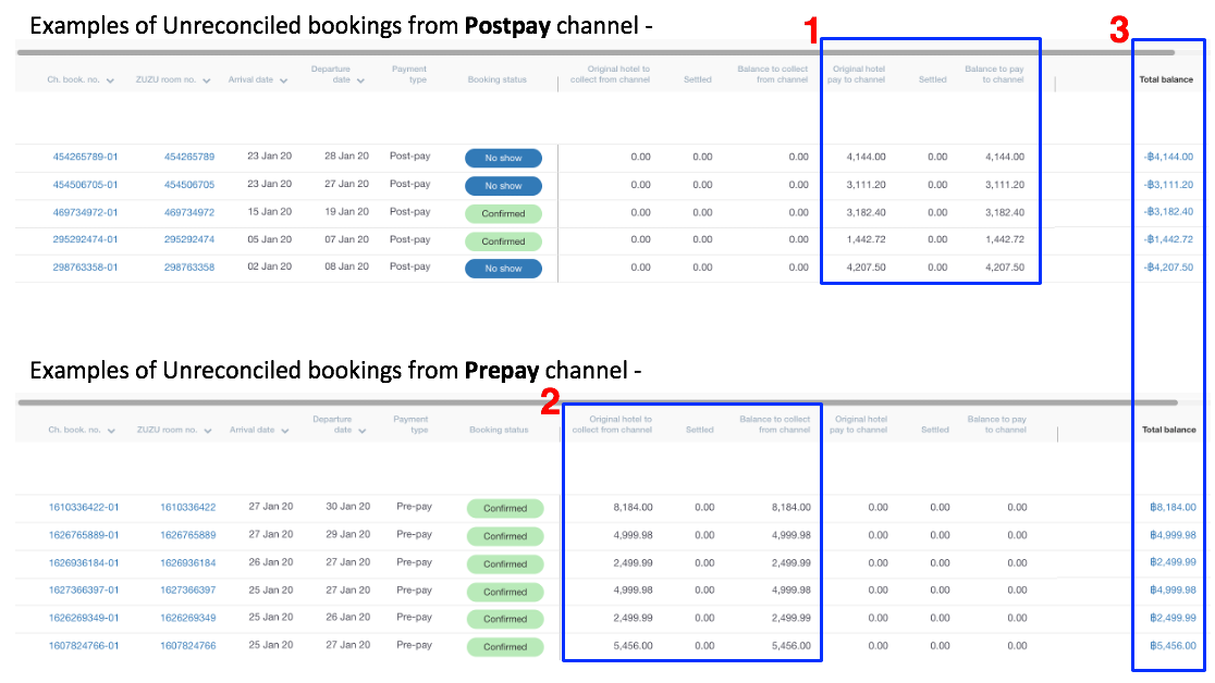 - Pengumpulan hotel asli dari saluran = jumlah total yang harus dibayar oleh saluran berdasarkan detail pemesanan.