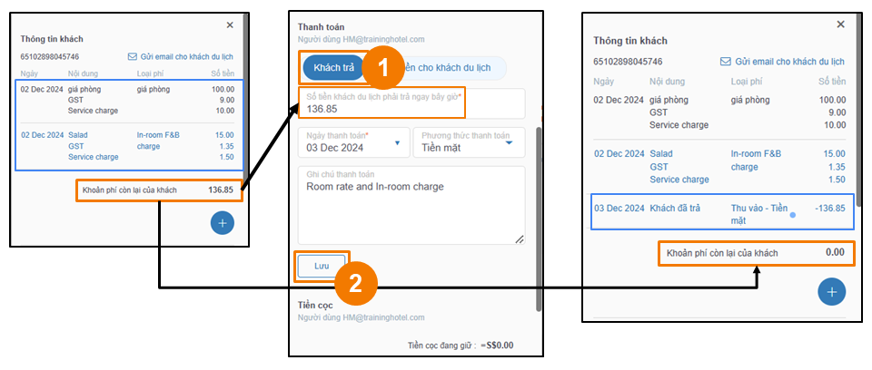 - Thanh toán của khách