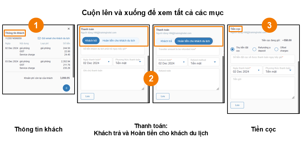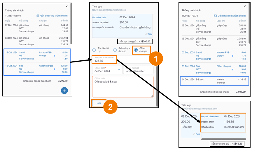 Các tính năng bổ sung (bù trừ khoản phí bằng tiền đặt cọc của khách và xử lý hoàn tiền cho khách) sẽ có mặt trong hệ thống HMS.