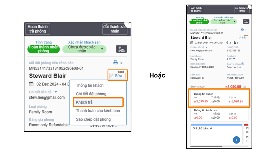 Xem và Cập nhật Thông tin khách từ Thẻ Đặt Phòng