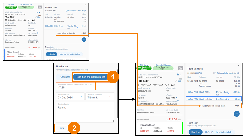 - Hoàn tiền cho khách